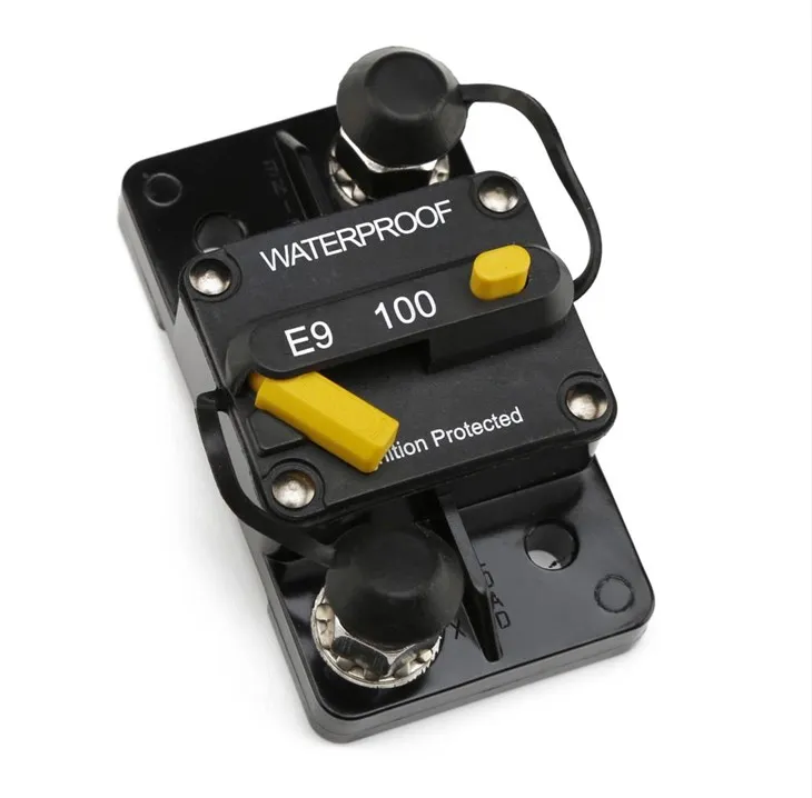 Е93 високонапонски прекидач је једнополни термички прекидач, направљен од црне УЛ 94В0 термосет пластике. Термопластични еластомерни изолатори су обезбеђени на покривеним јединицама са основама у Ф-стилу (површинска монтажа). Обично се користи у помоћним и помоћним колима у камионима, аутобусима, РВ возилима, бродским системима, пуњачима батерија, ДЦ аудио системима, апликацијама у одељцима и просторима за спавање.